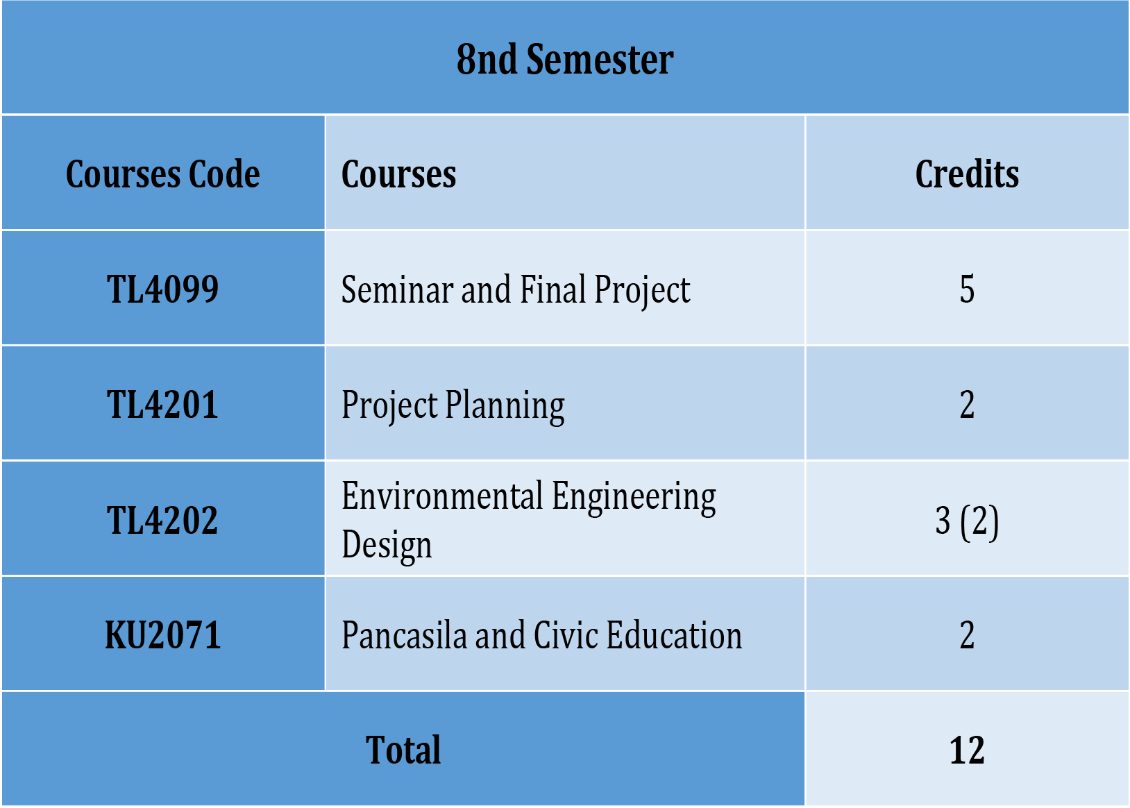 Curriculum of Environmental Engineering Study Program as follows
