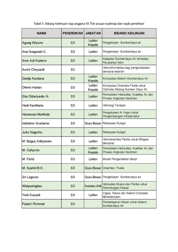 - Pemodelan hidrologi dan hidraulika, proses hujan-limpasan, mitigasi bencana